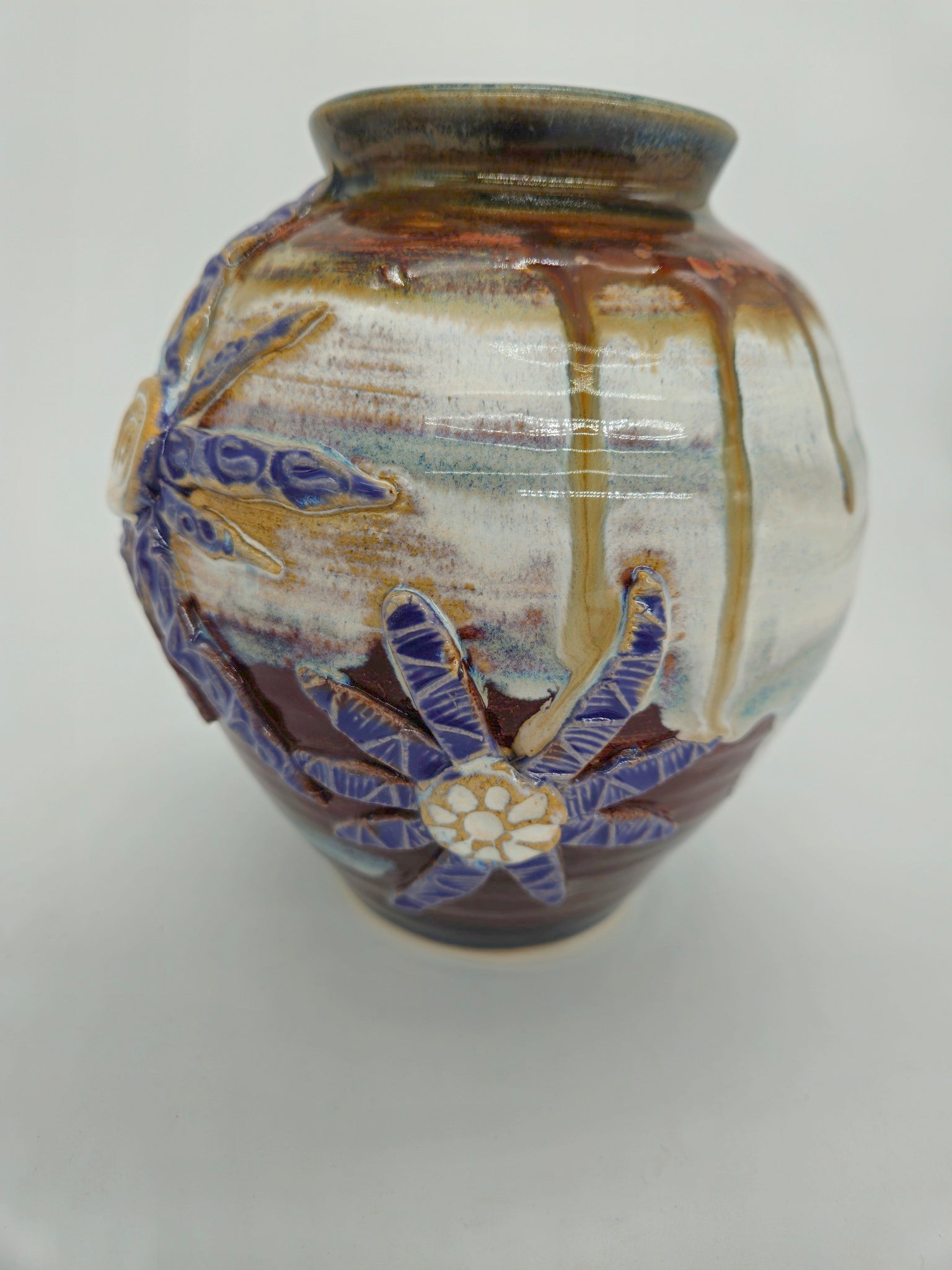 Hand made ceramic vases with dynamic coloring. Add motion and drama to your floral designs with these one-of-a-kind creations.